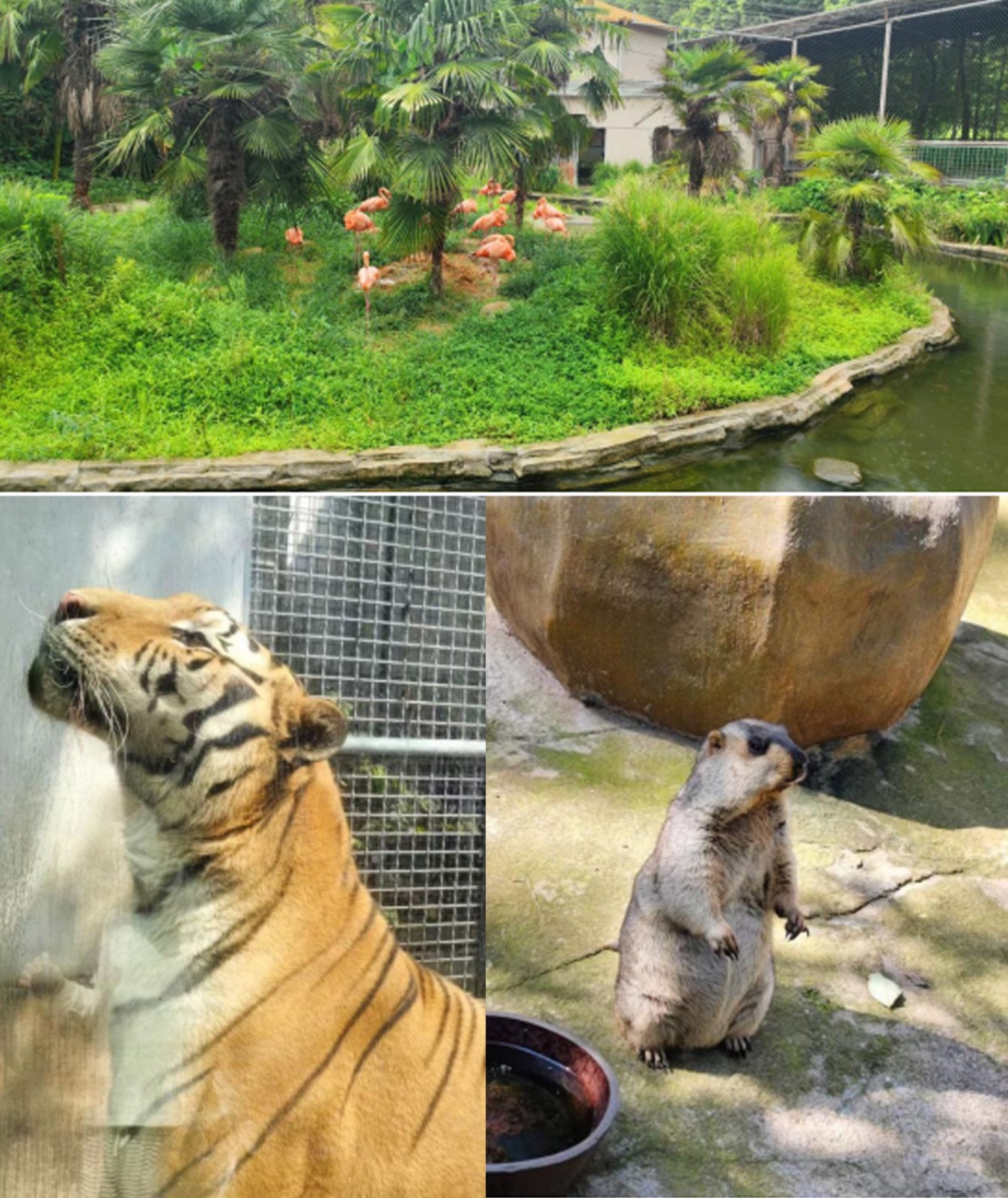 在老虎園區(qū)里,威風(fēng)凜凜的白虎和東北虎隔著籠子互相打量,時而發(fā)出低沉的吼聲交流,而另一邊的兩頭東北虎則親密地緊挨在一起打盹,斑駁的樹影灑在它們金黃的皮毛上。不遠(yuǎn)處的犀牛區(qū),兩只體型龐大的白犀牛正在上演領(lǐng)地之爭,它們用粗壯的角互相頂撞,揚(yáng)起陣陣塵土,發(fā)出沉重的鼻息聲;非洲大羚羊區(qū)最是熱鬧,高大的羚羊們溫順地低下頭,伸著脖子吃著小朋友親手投喂的食物,長長的睫毛在陽光下忽閃忽閃。樹冠間,靈巧的長臂猿扒著樹干蕩著秋千,偶爾還會停下來好奇地觀察下方拍照的游客。園區(qū)主干道上,飼養(yǎng)員牽著一匹可愛的袖珍小馬漫步,珍珠馬的脖子上系著的鈴鐺隨著步伐發(fā)出清脆的聲響。整個園區(qū)洋溢著人與動物和諧相處的氛圍。