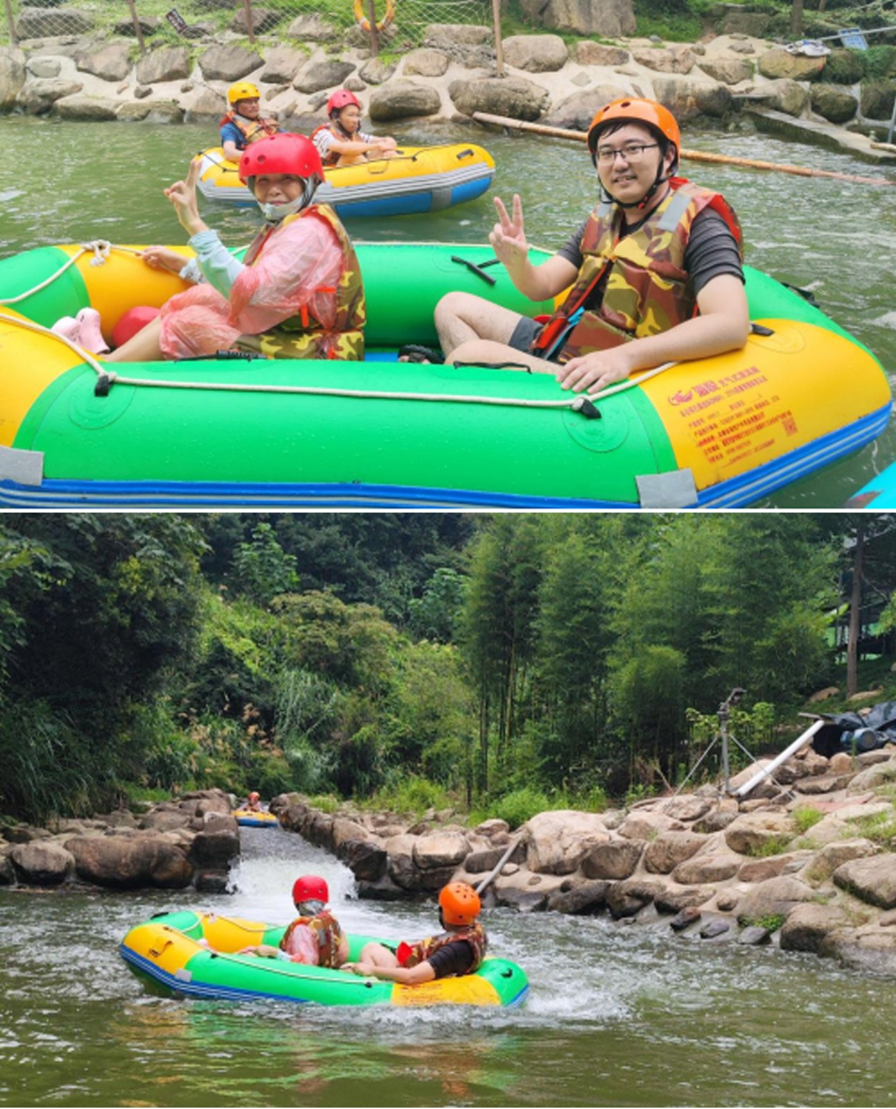 小伙伴們換上裝備,踏進(jìn)皮筏,兩兩一隊,水瓢、水槍齊上陣,小伙伴們瞬間化身漂流勇士,寧靜的河道霎時間成為潑水狂歡的戰(zhàn)場,歡聲笑語與水花四濺交織在一起。清涼的溪水驅(qū)散了夏日的燥熱,激烈的“對戰(zhàn)”更點(diǎn)燃了團(tuán)隊的活力與激情,一場?酣暢淋漓的夏日消暑大戰(zhàn)?讓大家徹底放飛自我,拉近了彼此距離,也為第一天的行程注入了無限活力。